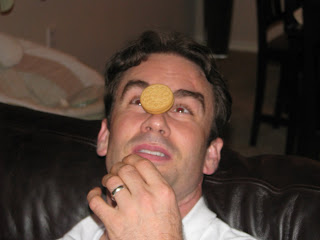 Brad is "Facing the Cookie" and tried to wink it into his mouth