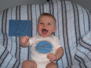 We frequently hear that he is the most happy, cheerful, smiley baby others have ever seen. We just adore him and love his squeals, giggles, and precious toothless grins.